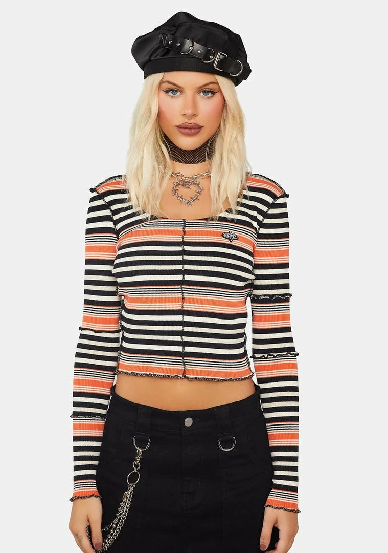 Budget 🤩 Basic Pleasure Mode Long Sleeve Crop Top Bella Striped Long Sleeve Tee 🎁