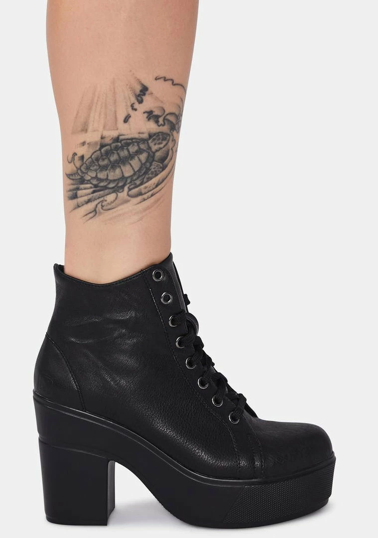 it’s the weekend, YOLO! These ankle boots have front lace up closures N’ stacked soles.