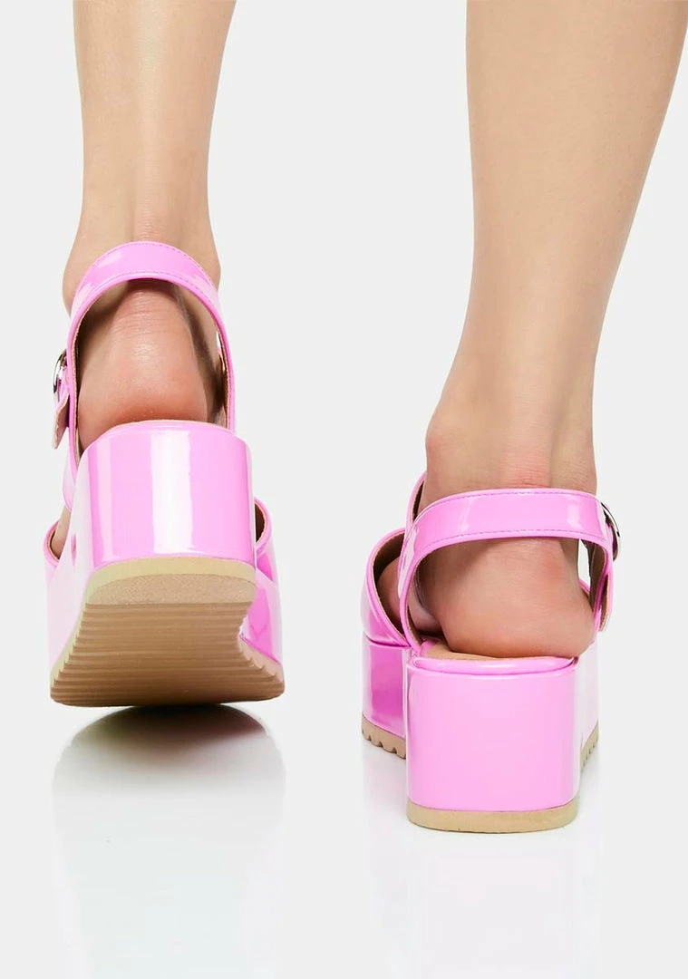 cuz you’re sleek and sophisticated. These platform sandals have a patent vegan leather construction, rounded open toes, adjustable buckled ankle straps, and treaded outsoles.