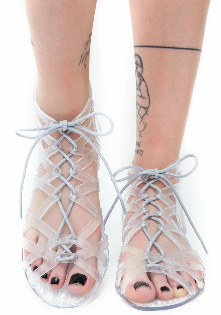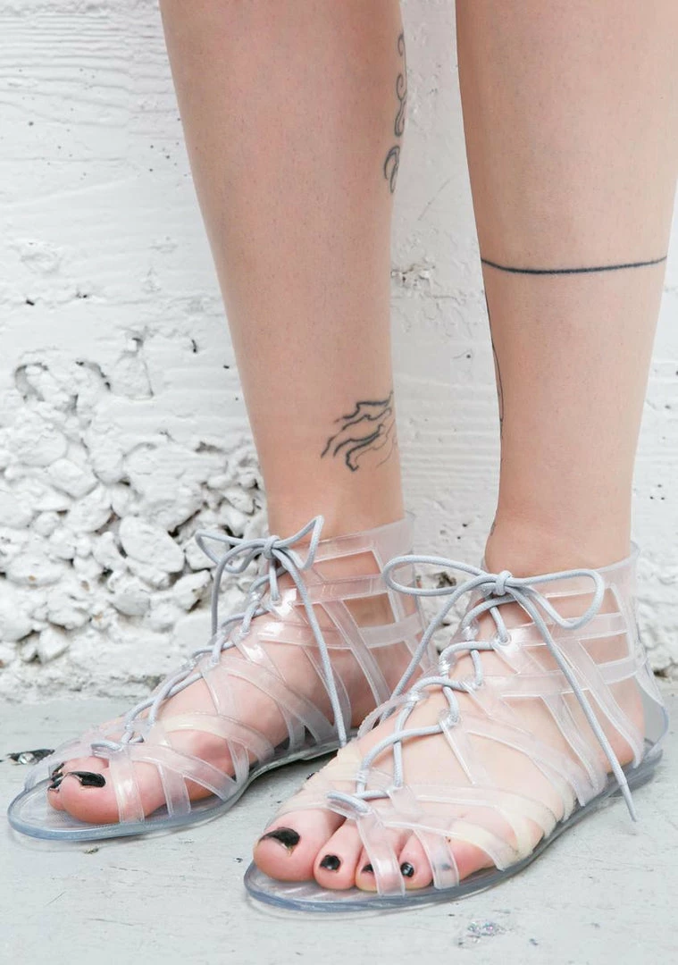 are prefect for the babez who love a good รขยยol #tbt. These totally see-thru gladiator sandals have an open plastic construction with peep toes and top lace-up closure.