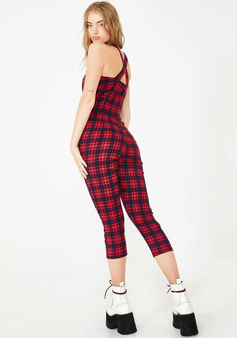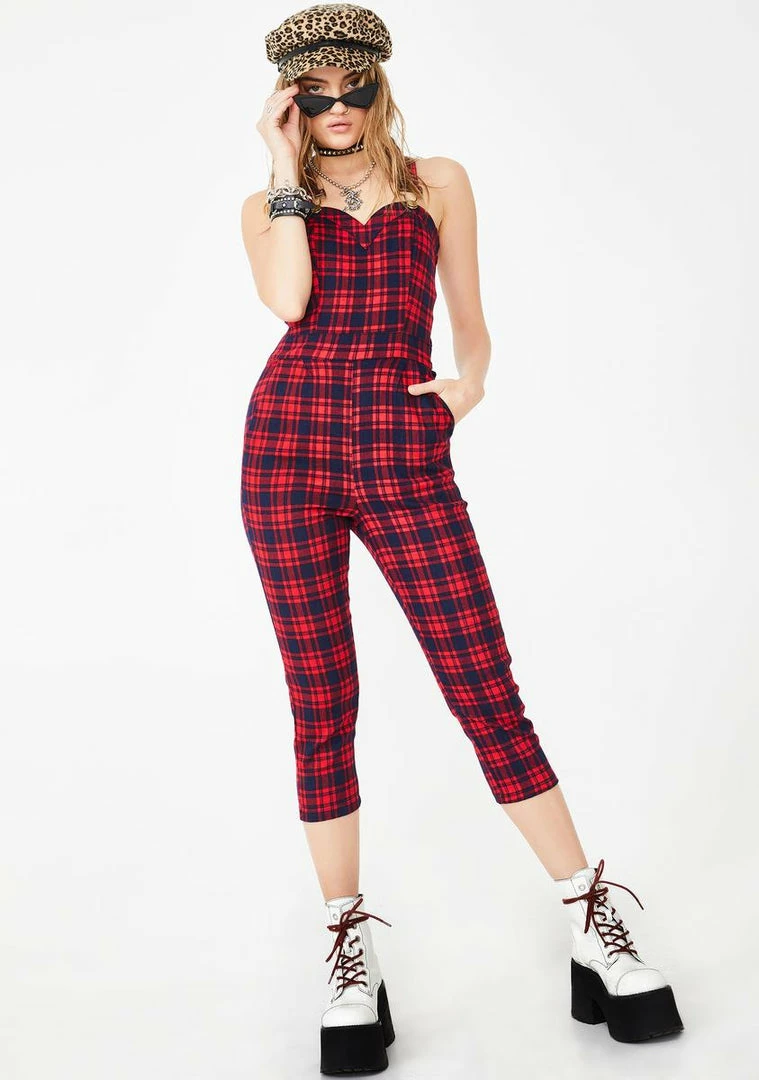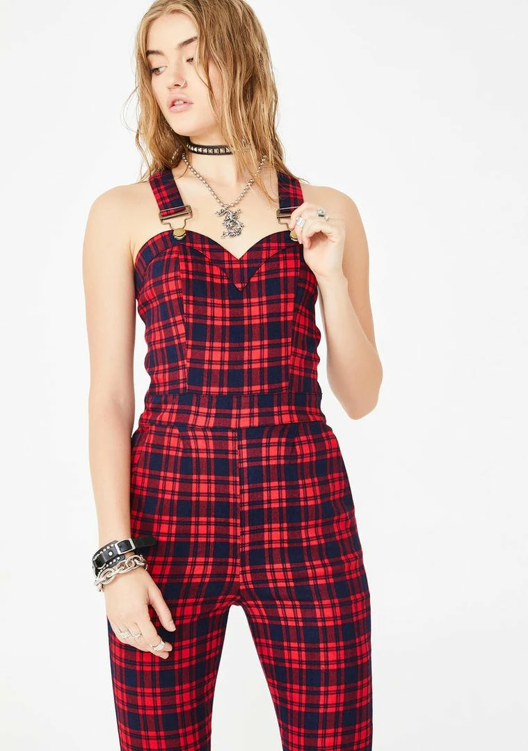 Budget π₯ Jawbreaker Fitted Plaid Overall Jumpsuit π