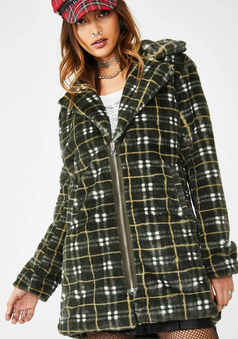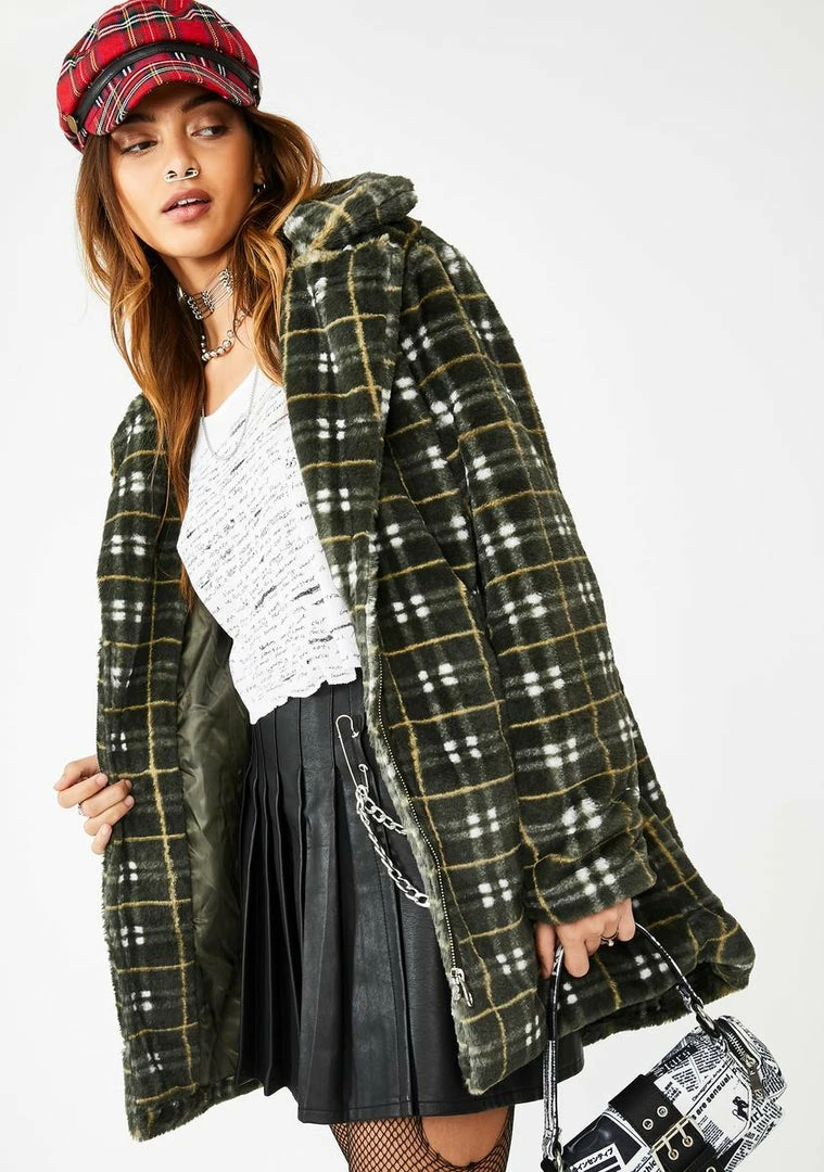 Cheapest ๐ Jawbreaker Grunge Plaid Faux Fur ๐งฅ Coat โค๏ธ