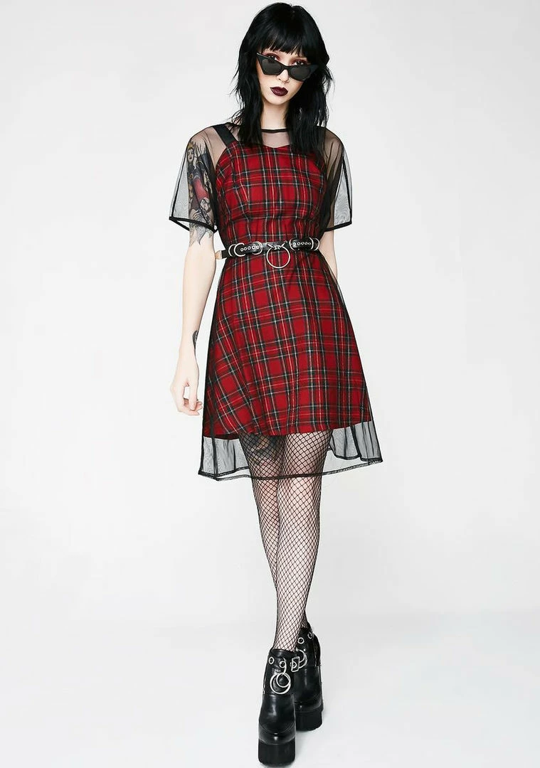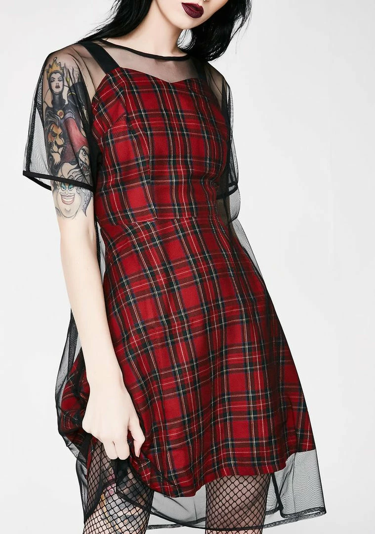 will give ya those familiar feelingsรขยยฆ This plaid dress has a fit Nรขยย flare silhouette and a sheer black mesh dress overlay for exxxtra dimension.