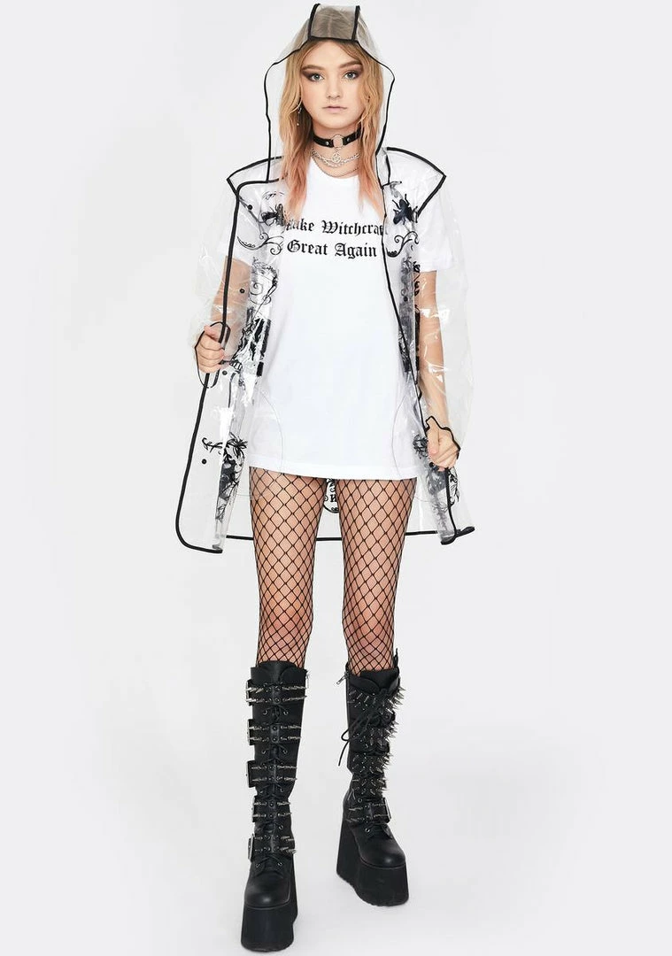 cuz youΓ’ΒΒre clearly startinΓ’ΒΒ some hexing magic. Look wicked AF in this hooded raincoat that has a clear vinyl construction, pockets on the front NΓ’ΒΒ a spirit board print all ova.