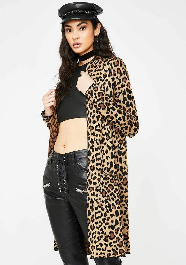 cuz this lil kitty doesnΓ’ΒΒt like to be toyed with. Give Γ’ΒΒem the claws in this fierce long sleeve cardigan that has an open front, side pockets NΓ’ΒΒ animal print all ova.