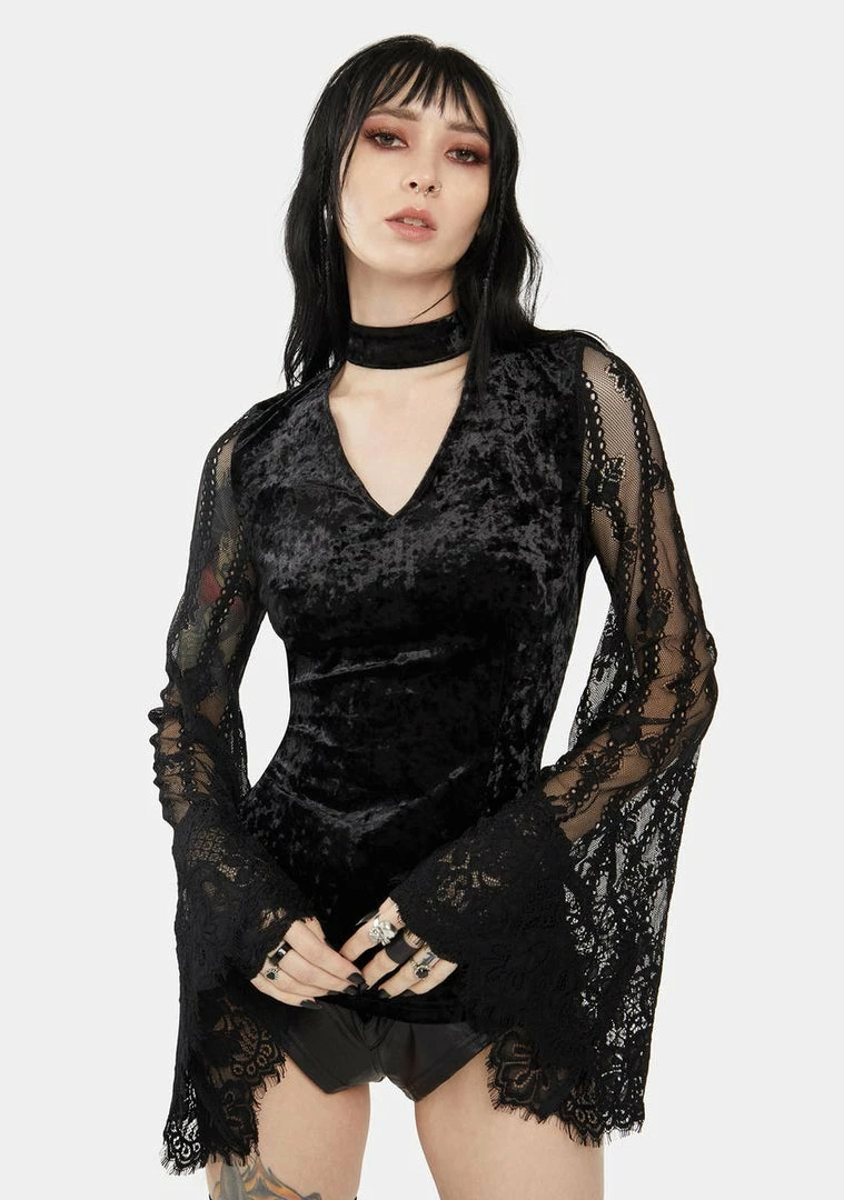 Budget π Jawbreaker Tops Velvet Top With Lace Bell Sleeves π