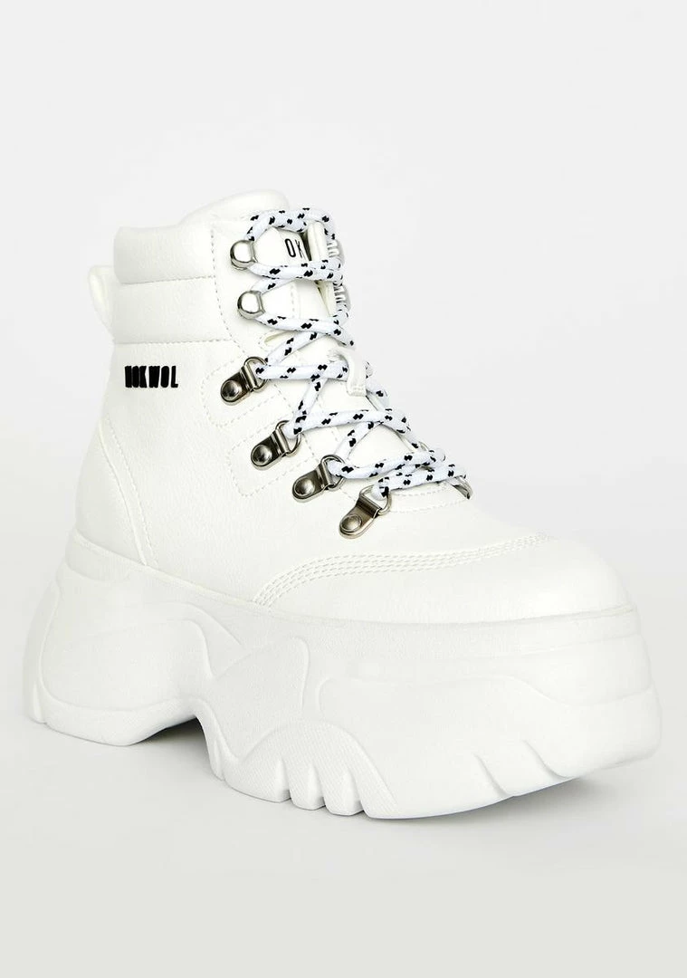 cuz you always leave them shook! Stay turning heads in these high top sneakers that have adjustable lace-up closures, chunky platform soles, and rubber logo branding on the sides.